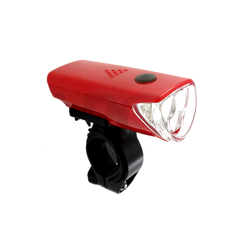 Водонепроницаемый, 3 функции.Световой элемент: 3 белых LED.Крепление: к рулю велосипеда.Мощность: 13 Lumen.Материал: пластик.Цвет: корпус красный.Питание: ААА (1.5V) - 3 шт. в комплекте.